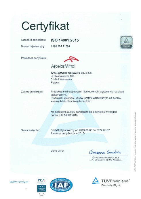 System Zarządzania Środowiskowego w Hucie ArcelorMittal Warszawa